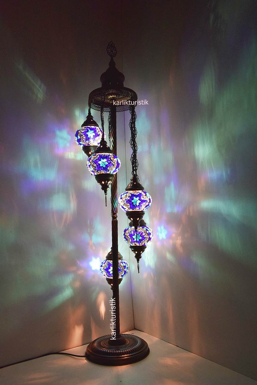 Boho Lamp ,Tiffany Standing Lights ,Mosaic Glass 5 globe Floor Lamp -I-S-F 5503