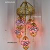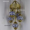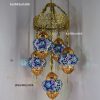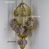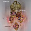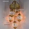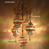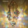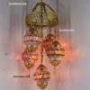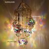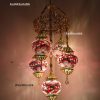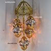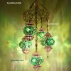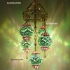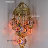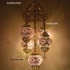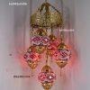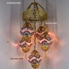 Colorful Turkish Handmade Unique Filigree Art Mosaic Gass Lamps 4+1 Ball Ceiling Lamps Home Decor Gold Plated Copper Material Chanderliers